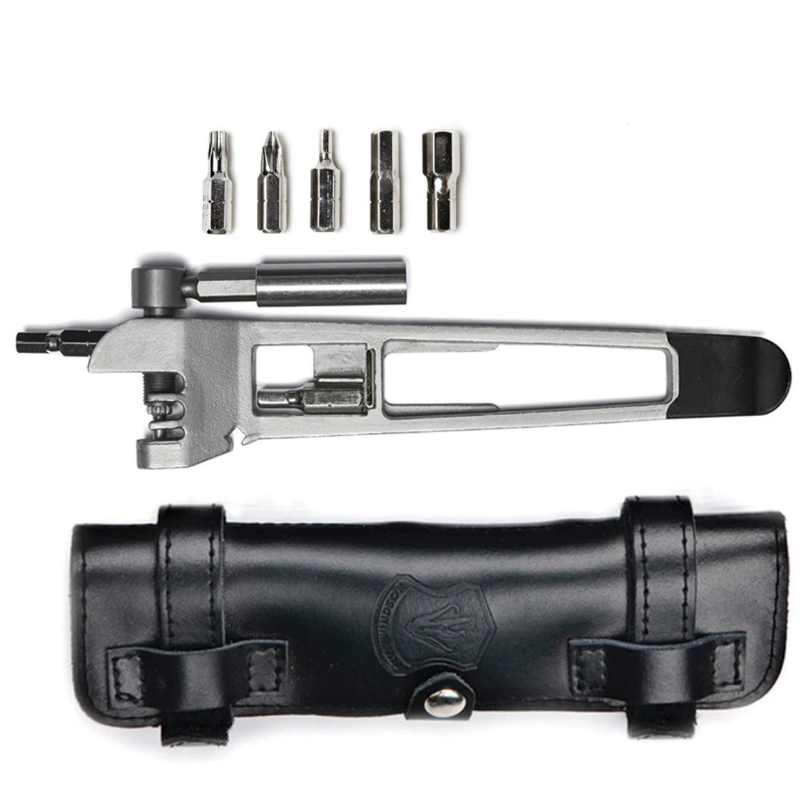 Mit dem Multi Tool Kettennieter Fahrrad von FullWindsor bist Du unterwegs auf dem Bike bestens ausgestattet. Es beinhaltet einen Kettennieter, Reifenheber, Speichenschlüssel, Sechskant-Bit-Einsätze in den Größen 3, 4, 5, 6 und 8 mm, Kreuzschlitzschraubendreher, T25 Torx-Bit, Bit-Halter und Flaschenöffner. Das Multi-Tool kommt in einem praktischen Lederetui und passt in jede Tasche.